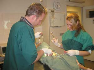 Op het gebied van chirurgie houden we ons zowel bezig met standaardoperaties als sterilisaties en castraties, maar ook zaken als het vastzetten van een hondenmaag ter voorkoming van een maagkanteling, het verwijderen van blaasstenen bij alle voorkomende diersoorten enzovoorts.